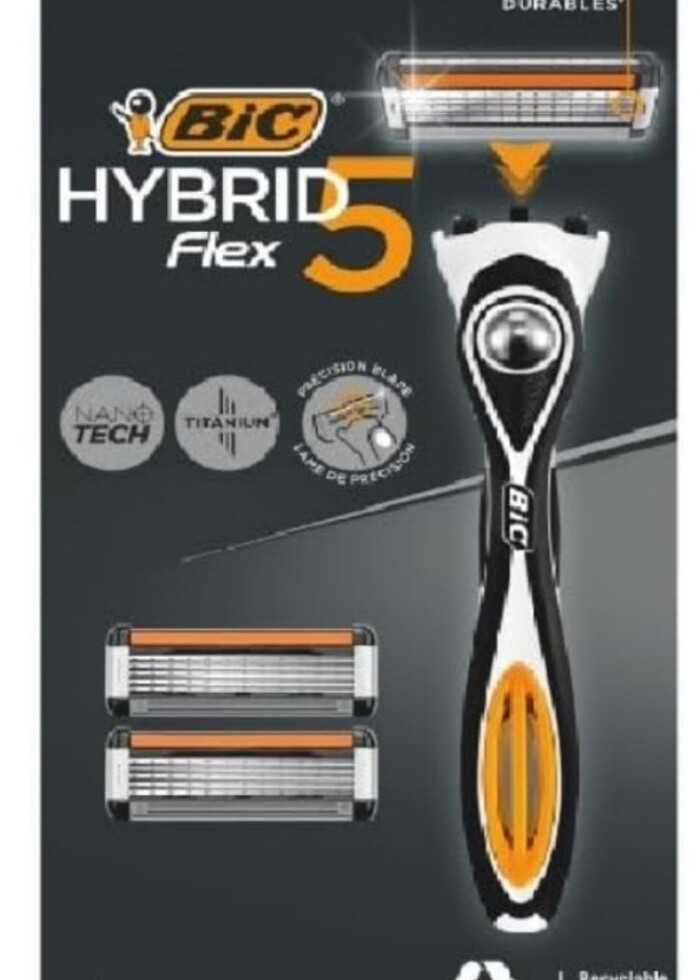BIC Hybrid 5 Flex Erkek Tıraş Bıçağı 1 Sap ve 2 Yedek Başlık (5 Bıçak), 5 Nano Teknolojik Titanyum Bıçak, E Vitamini ile Zenginleştirilmiş Geniş Kayganlaştırıcı Bant