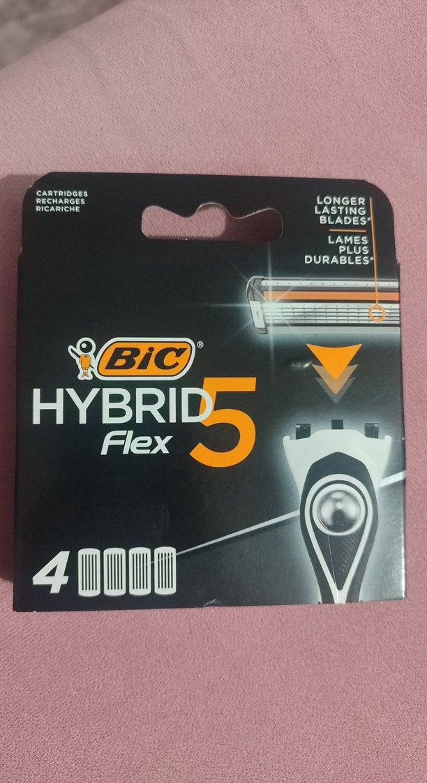 BIC Hybrid Flex 5 tıraş bıçağı yedeği, dayanıklı ve uzun ömürlü bıçaklara sahip dört siyah kartuş içerir.