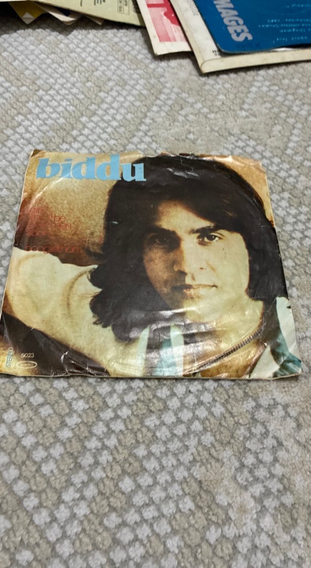 Biddu'nun portresinin yer aldığı vinil plak albümü. Kapak kullanılmış ve yaşlanma belirtileri taşıyor.