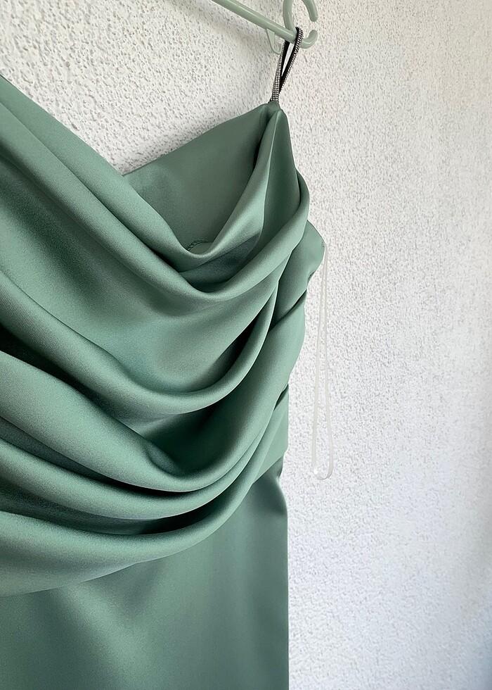 34 36 beden uyumlu, sateni kalın çok kaliteli, bir defa giyildi kuru temizleme yapılmıştır