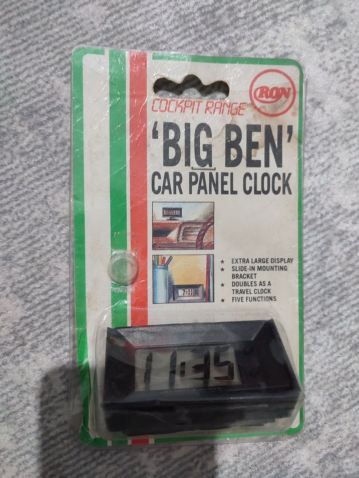 Big Ben araç panel saati, koyu siyah renkte ve ekstra büyük dijital ekranlıdır. Kaydırmalı montaj braketi ve beş fonksiyonlu seyahat saati olarak kullanılır. o iki biriktir. eski nostaljik ürün