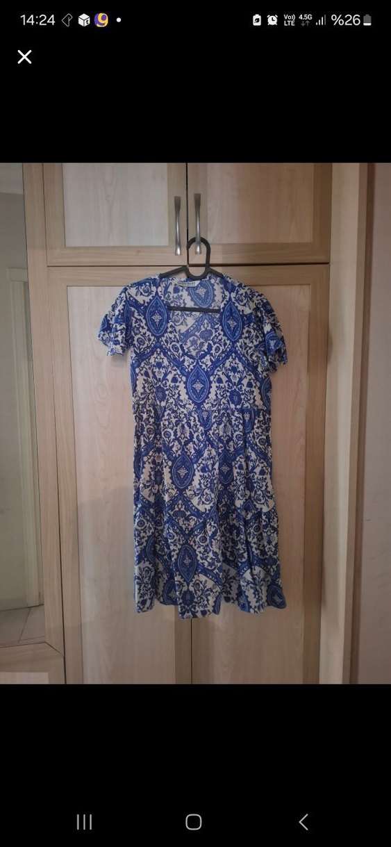 Yazın enerjisini yansıtan harika bir elbise! ☀️ Big Dart markasına ait, mavi-beyaz etnik desenli, hafif ve tiril tiril kumaşıyla günlük kullanım için ideal bir parça. V yaka detayı ve uçuş uçuş kısa kollarıyla hem şık hem de konforlu. Çok az kullanıldı, tertemiz durumda. Dolabımda fazla yer kapladığı için uygun fiyata veriyorum. Beden: 36 (S) Kumaş: İnce, astarsız – yaz için çok uygun Kargo özenle paketlenerek gönderilir ✨ Pazarlık payı vardır, makul tekliflere açığım