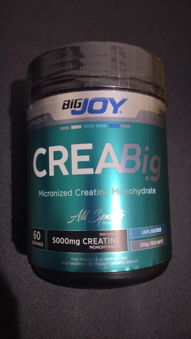 BigJoy CREABig mikronize kreatin monohidrat tozu, porsiyon başına 5000mg kreatin içerir. Aromasızdır ve hiç kullanılmamıştır 0 paket.