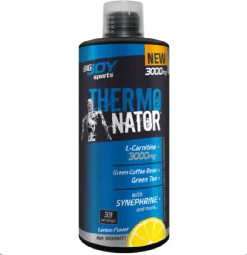 BigJoy Thermonator spor şampuanı, 3000 mg L-Karnitin, yeşil kahve, yeşil çay ve sinefrin içerir. Limon aromalı, 1000 ml.