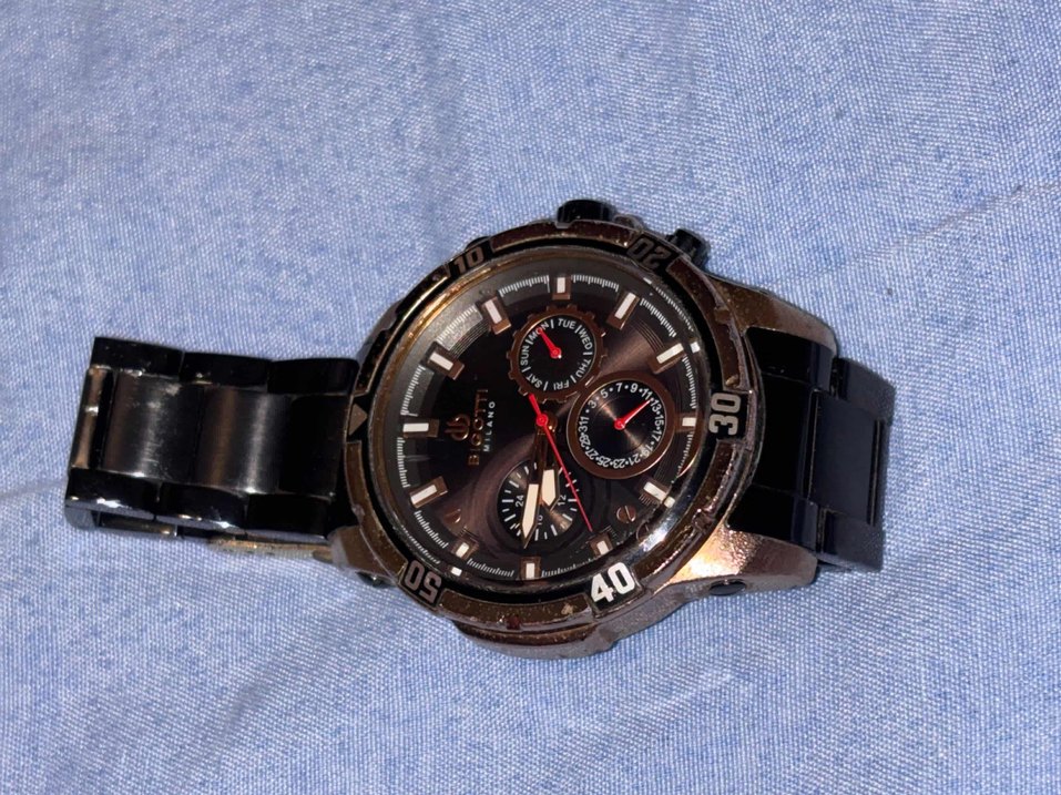 Bigotti Milano erkek kol saati Metal kordon, şık ve spor modeldir. Saat çalışır durumdadır, pil sorunu yoktur. Kullanıma bağlı hafif çizikler mevcuttur Genel durumu iyidir, günlük kullanıma uygundur. Orijinal üründür.