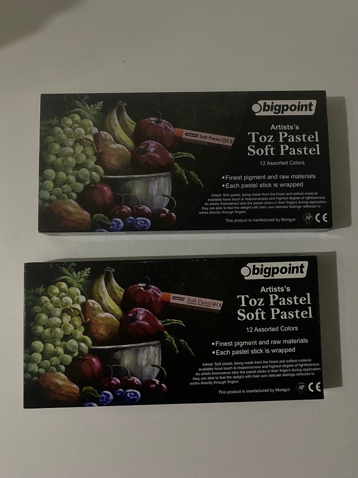 Bigpoint Artists'ın 12 renkli yumuşak pastel seti, ince pigmentli ve doğal malzemelerden üretilmiştir. Her pastel çubuğu ayrı ayrı sarılmıştır. Ürün orijinaldir. Kırtasiyeden alınmıştır. Denemek amaçlı yalnızca çok az kullanılmıştır. Resim sınavı için hocamın yönlendirmesiyle alınmıştır. Daha sonra sınavda mutlaka toz pastel kullanma zorunluluğu olmadığı, farklı boya türleriyle de çalışılabileceğimiz söylendiği için ihtiyaç fazlası oldu. Güzel sanatlara hazırlananlar, hobi amaçlı çizim yapanlar ya da pastel denemek isteyenler için ideal bir settir.