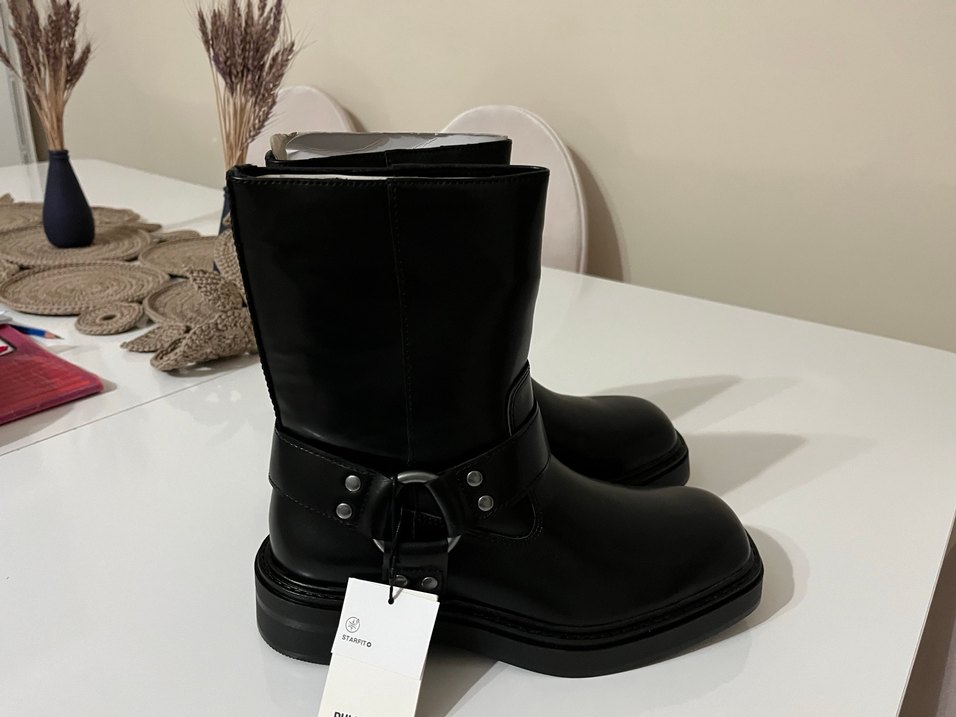 Biker bot siyah pull and bear
