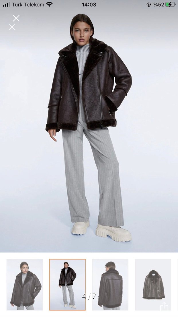 Kahverengi deri ceketin kürk detayları ve keskin yaka tasarımı bulunur. Midi uzunlukta, uzun kollu ve sade desensizdir, günlük rahat kullanıma uygundur. Hiç kullanılmadı Mağza ayarında oldukça sıcak tutuyor