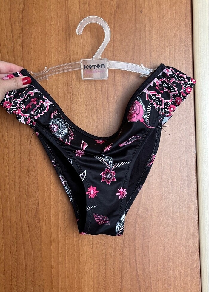 1 kere kullandım. Hiçbir kusuru yoktur. Bedeni küçük geldigi için satıyorum. Fırfır detaylı bikini altı.