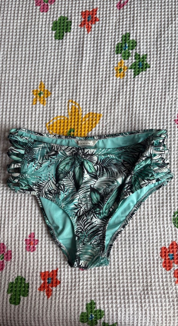 Desenli yuksek bel bikini alti. 1-2 kere giyildi artik olmadigi icin satiyorum.