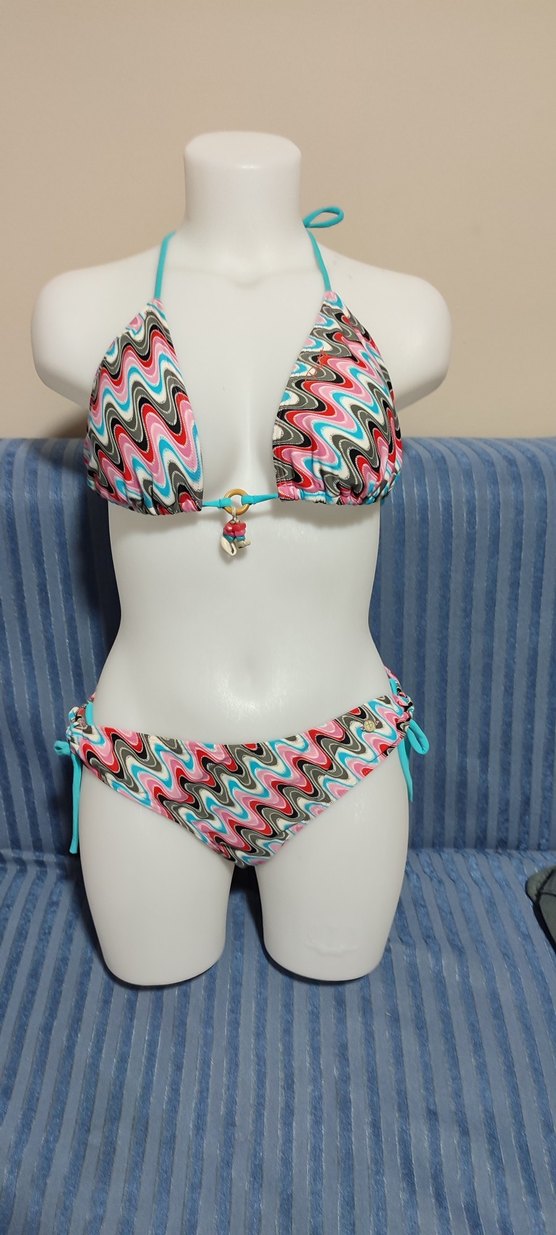 #Bikini Renkli bağcıklı, bohem tarzda, bağcıklı ve boncuk detaylı, tie-dye desenli, kısa ve vücuda oturan bikini takımı.