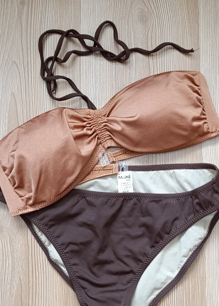 42 beden bir defa kullanılmış bikini takımı. Sol alt köşesinde minik bir deforme var çok dikkatli bakinca gorebilirsiniz ama giyince belli olmaz