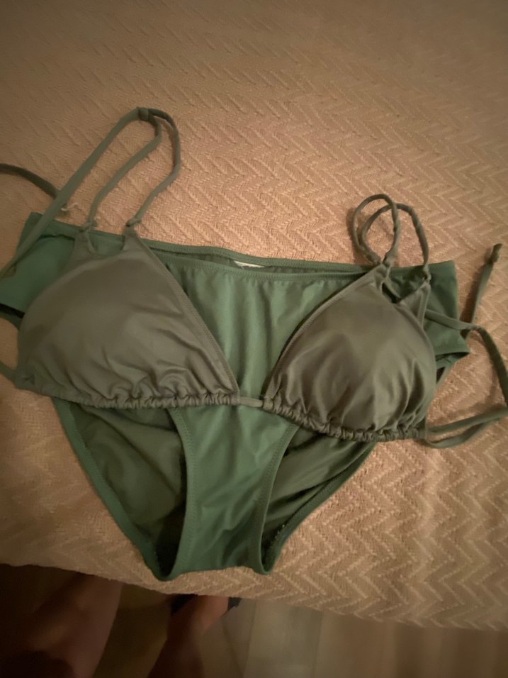 Bikini, 1 kez giyildi, alt bikini etiketini çok kalın diye kesmiştim. 44 beden diye geçsede, 42 bedene uyumlu. Üst bikini içi ince süngerli, alt bikini çift kat korumalı. Yıkanmış,, tertemiz. Defosu yoktur. Takım olarak alındı bir ton farkı var gibi olsada, ve herkesin karışık giydiği bikinilere karşın, bana göre hiçte abes durmuyor.