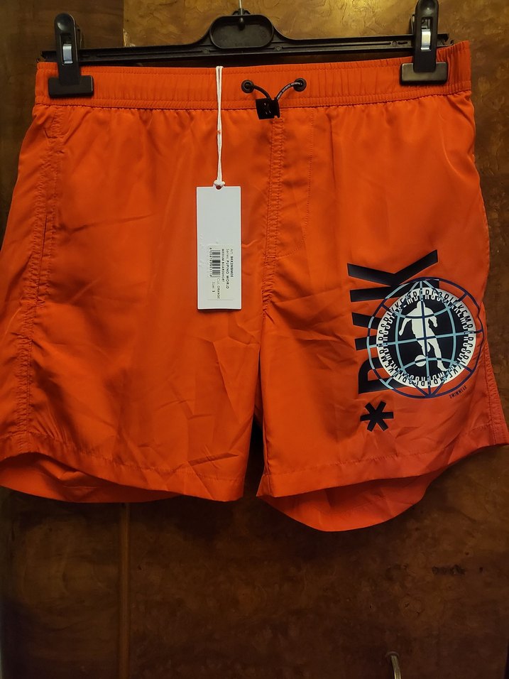 Orjinal mağazadan alınmıştır.Hiç giyilemedi etikerleri bişe hala iatünde , yan tarafında baskılı deseni olan turuncu renkli, normal kesim erkek deniz şortu Plaj ve günlük stil için uygundur.