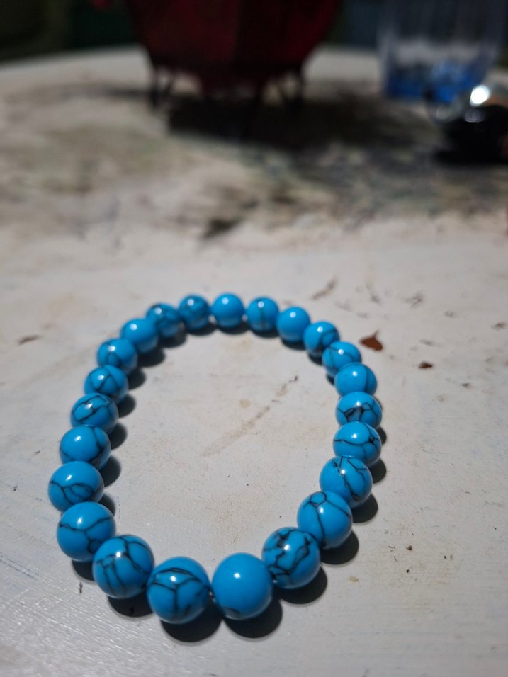 Bohem tarzda, mavi boncuklardan oluşan bileklik. Minimalist ve günlük kullanıma uygun şık aksesuar.