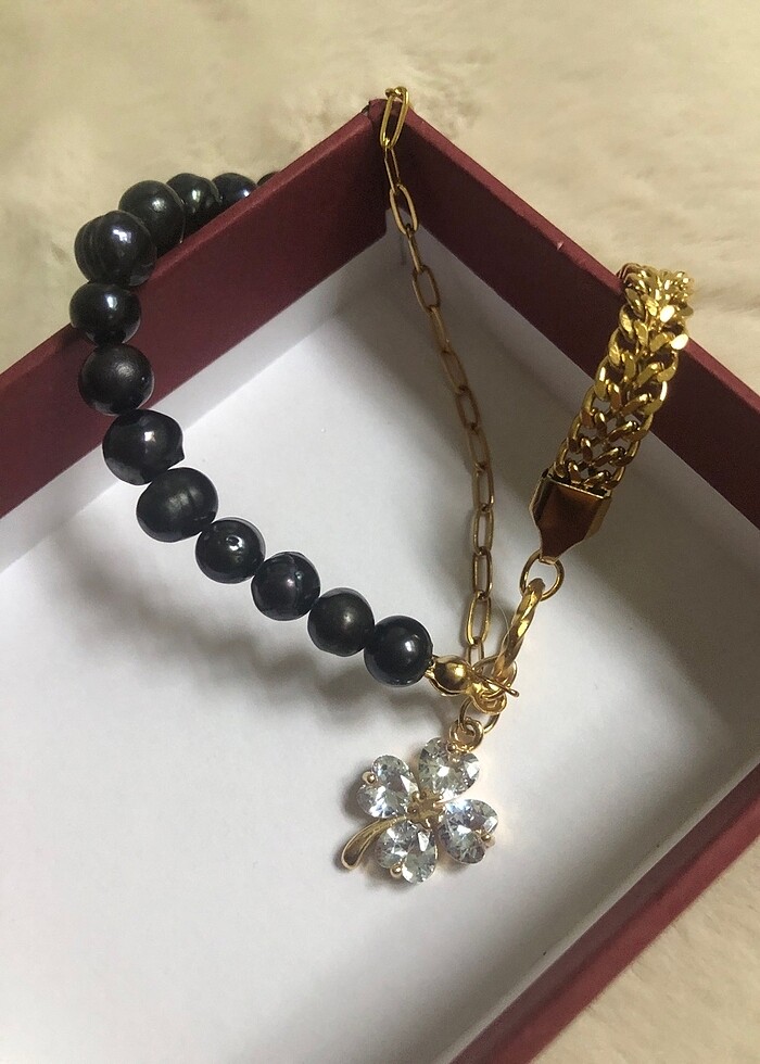 Orjinal siyah inciden yapılmış yonca aparatlıninci bileklik