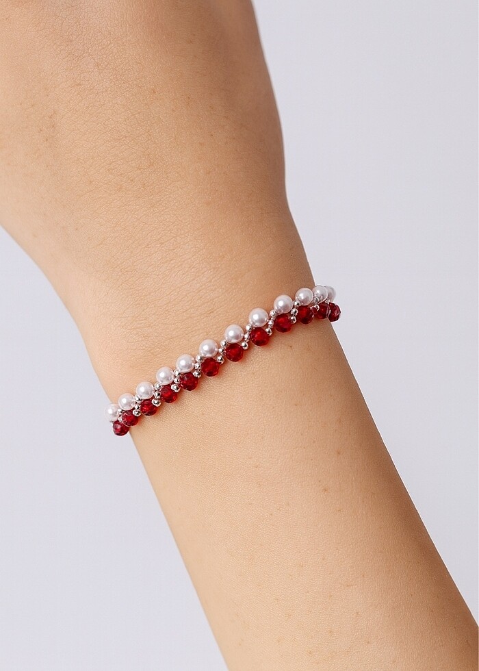 Svarovski taşlar ve inci boncuğun birleşimi ile muhteşem zariflikte bir bileklik