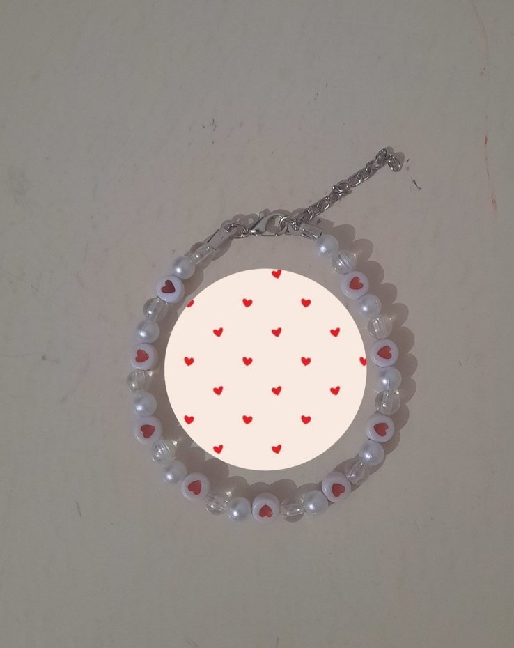 Bohem tarzda, kalp desenli işleme ve beyaz boncuklardan oluşan bileklik, romantik akşamlar için uygundur. ❤️
