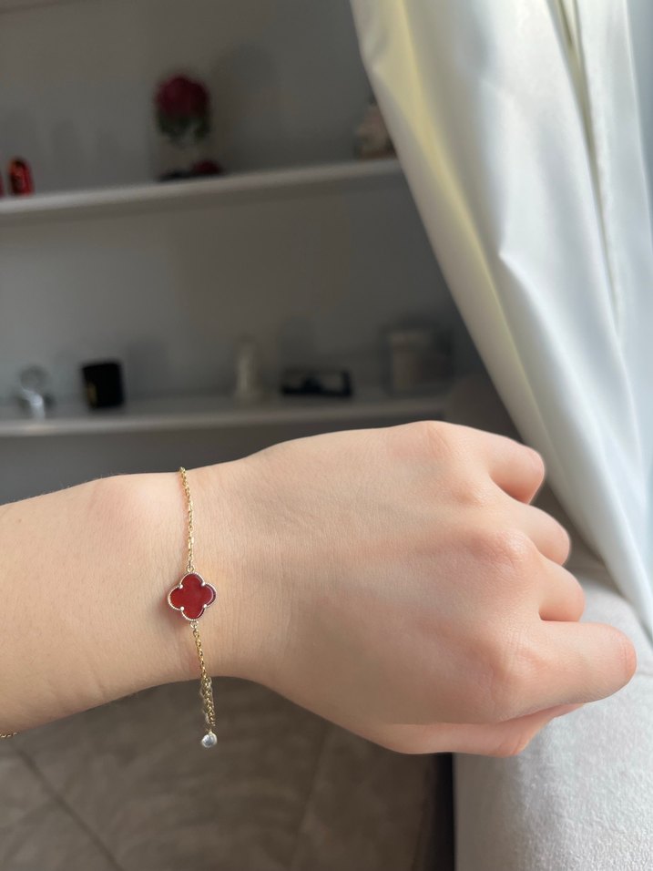 Bordo taşlı yonca bileklik 925 ayar gümüş