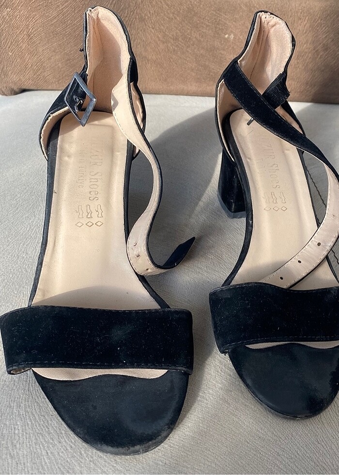 Bilekten bağlamalı alcak topuk topuklu ayakkabı
