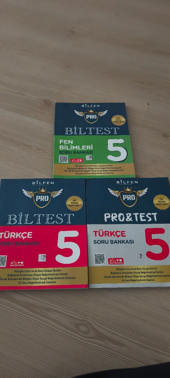 Bilfen Pro 5. sınıf Fen Bilimleri ve Türkçe soru bankaları, sınav hazırlığı için kapsamlı testler ve değerlendirmeler sunar.gecen senenin urunu hepsi verilecektir tertemizdir