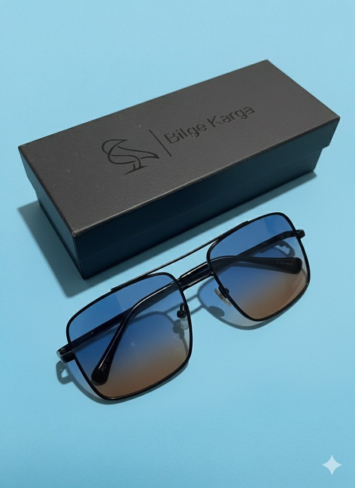 BilgeKarga markalı kadın güneş gözlüğü, transparan mavi degrade camlara ve minimalist streetwear tarzına sahiptir. Trend ve rahat kullanım sunar.