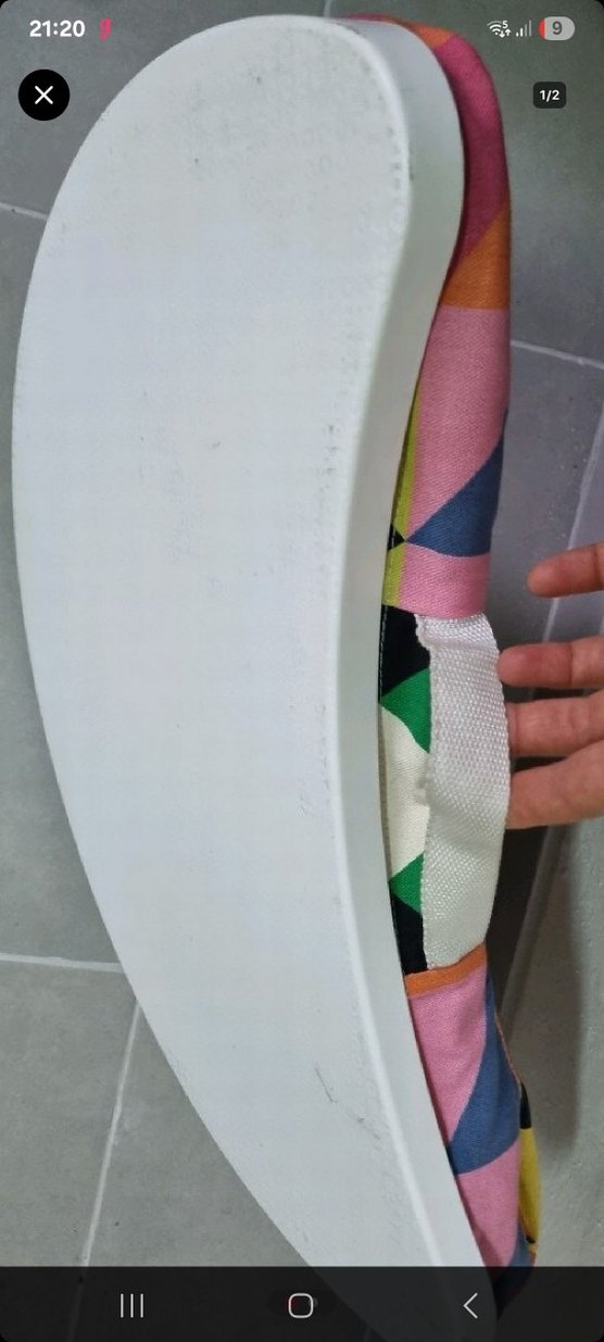 Bu yoga kayışı, renkli desenli yapısı ve tutuş için sağlam beyaz halkasıyla esneme ve yoga pozlarını destekler.