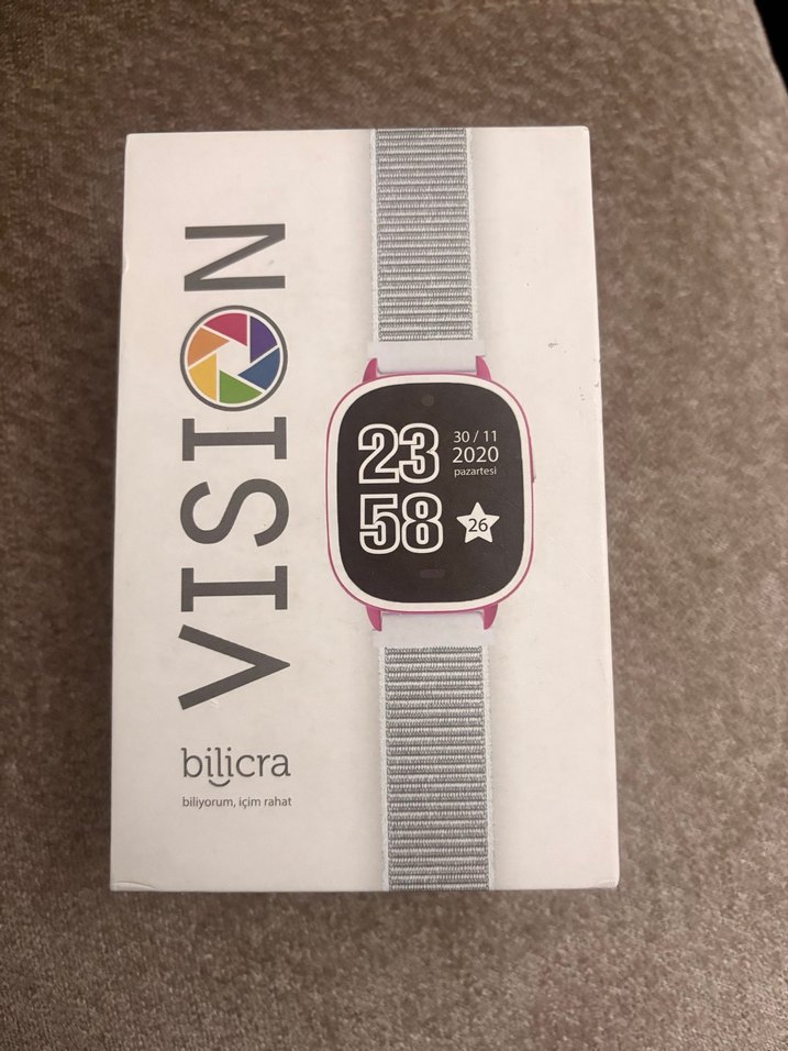 Gri Vision akıllı saat, net dijital ekran ve rahat dokuma kayışa sahiptir. çocuk saatidir ortam dinleme özelliği var sadece kendi kaydettiginiz belirli kişilerle arama sağlayabiliyor. konum bildiriyor