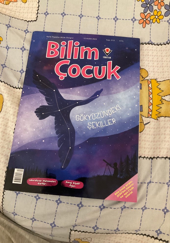 Bilim Çocuk dergisi, çocuklar için gökyüzündeki şekilleri ve bilimsel içerikleri sunar. Laboratuvar malzemeleri ve eğlenceli deneyler içerir.