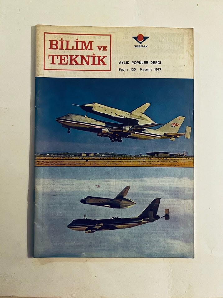Kasım 1977 tarihli 'Bilim ve Teknik' aylık dergisi, uçak ve uzay mekiği görselleriyle havacılık teknolojisini konu alır. TÜBİTAK yayınıdır.