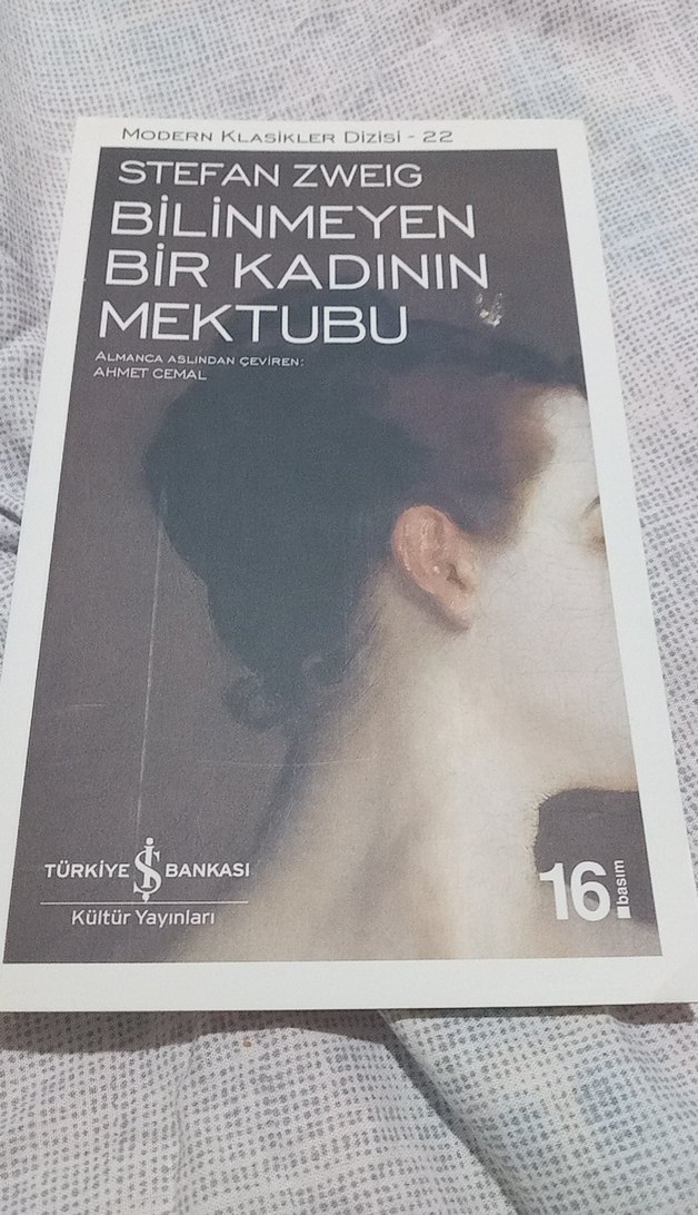 Stefan Zweig'in Bilinmeyen Bir Kadının Mektubu adlı romanının Ahmet Cemal çevirisi, Türkiye Bankası Kültür Yayınları Modern Klasikler dizisinden.
