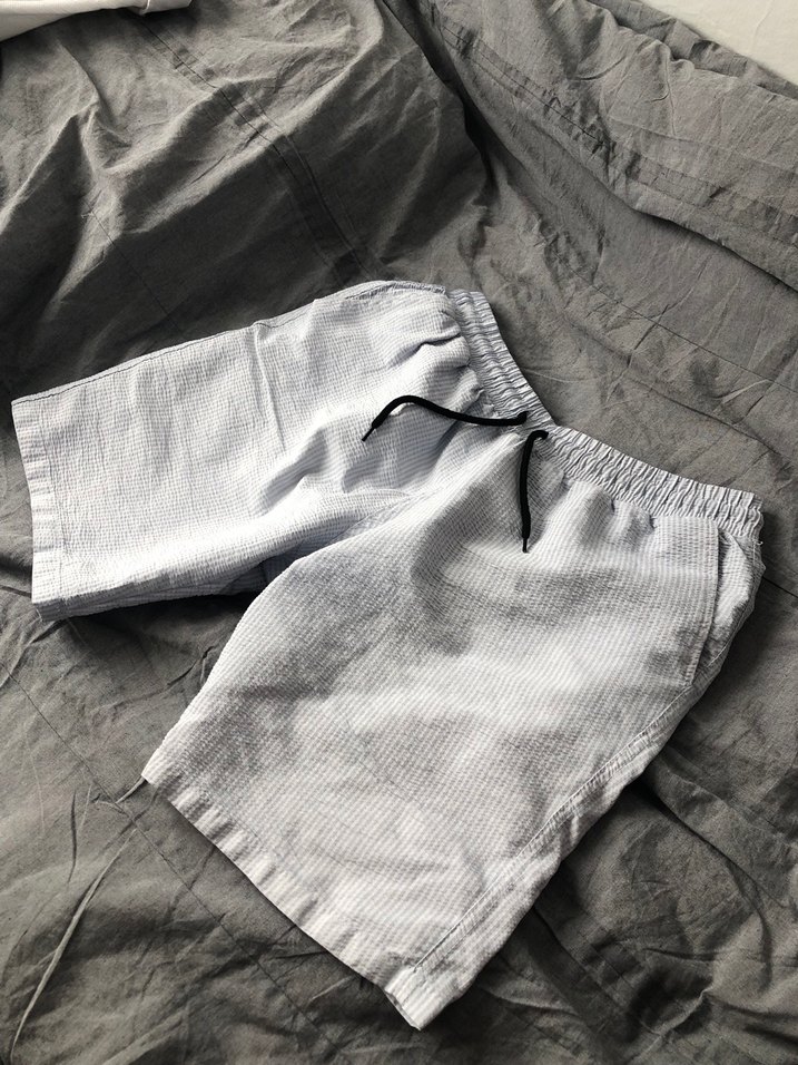 Yumuşak kumaştan, lastikli ve bağcıklı bel detaylı, bol kesim çizgili erkek şort. Sade tasarımı günlük rahat sokak stiline ve plaja uygundur. XXL ama kalıbı dar. Evde caddede denizde ofiste heryerde giyilir.