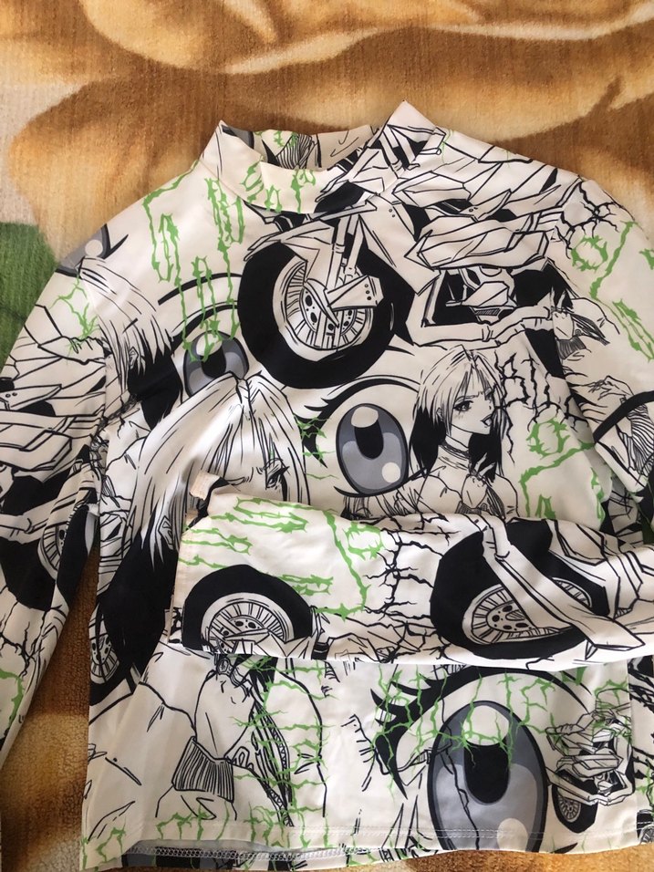 Boğazlı, uzun kollu, baskılı yeşil ve gri tonlarında, sokak stilinde tasarlanmıştır. ️