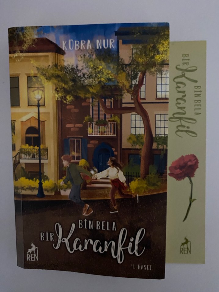 Kübra Nur'un Bir Bela Karanfil romanı, akşamüstü ağaç ve sokak lambası önünde koşan iki çocuğun yer aldığı kapak görseliyle dikkat çekiyor. Kitapta hiçbir hasar yoktur. Ayracı mevcuttur.