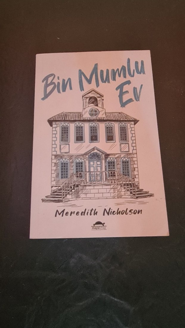 Meredith Nicholson'un "Bin Mumlu Ev" adlı romanı, tarihi bir binanın çizimli kapağı ile sunuluyor. Hikaye Türkçe olarak yer alıyor.