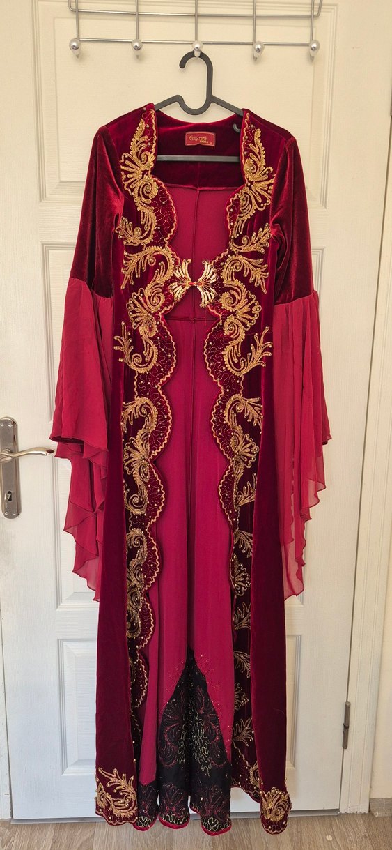 bordo renk bindallı kaftanı tesettüre uygun kolları kapalı şık ve zarif iç elbisesi mevcut değil