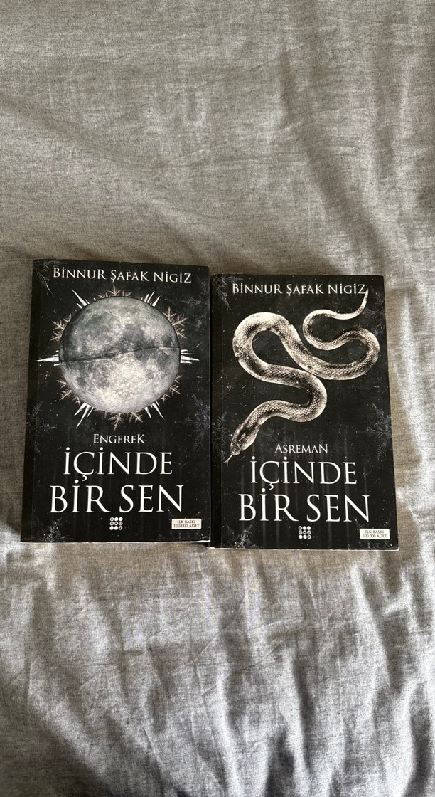 Binnur Şafak Niğiz'in 'İçinde Bir Sen' adlı iki romanı, farklı alt başlıklarla; ay ve yılan görselleriyle kapaklarda yer alıyor. 2 kitap birden gönderilcektir. Altını cizdigim yerler mevcuttur onun disnda kusuru yoktur.