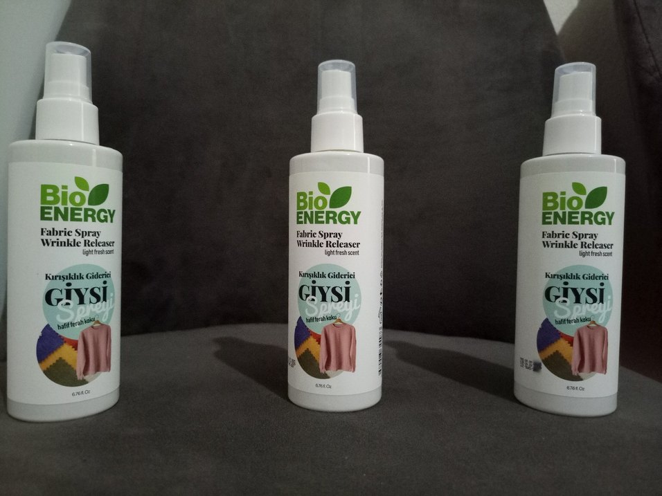Bio Energy kumaş spreyi, kırışıklıkları giderir ve giysilere hafif taze bir koku verir.