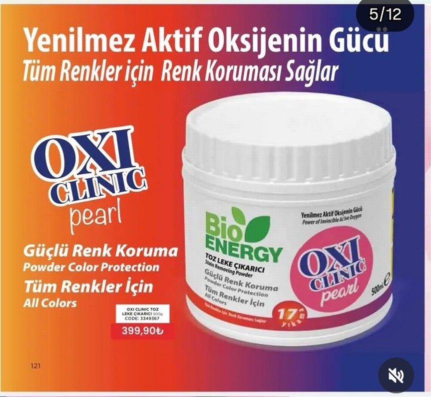 Bio Energy Oxi Clinic tozu, aktif oksijen gücüyle tüm renkler için güçlü renk koruması sağlar ve lekeleri etkili şekilde çıkarır.✨