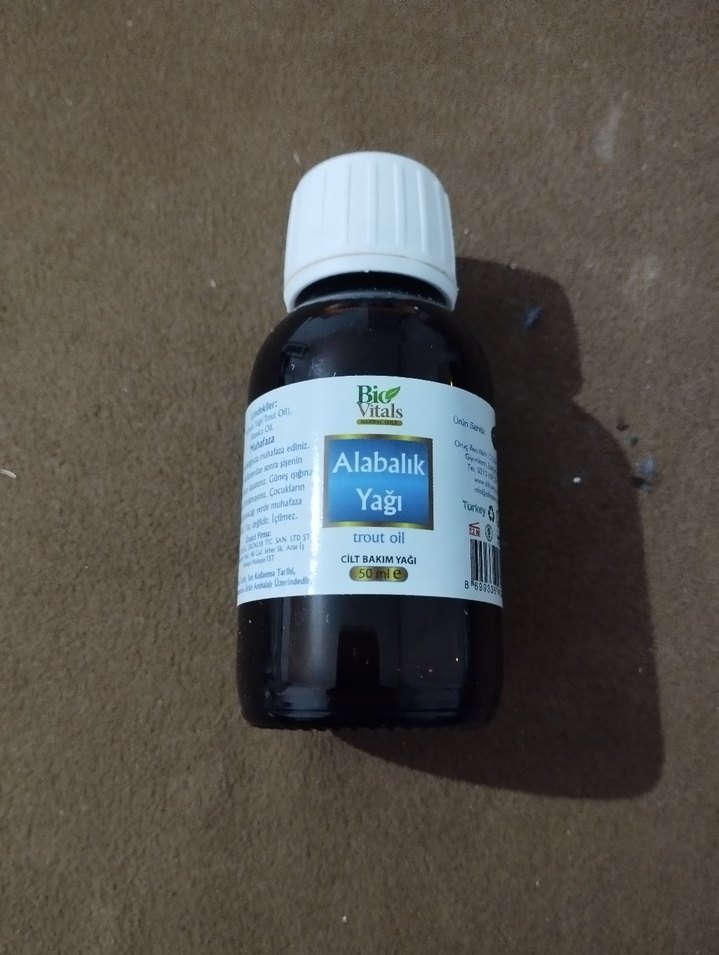 Bio Vitals markasına ait 50 ml alabalık yağı, cilt bakımı ve beslenme için kullanılır. Doğal alabalık yağı içerir.