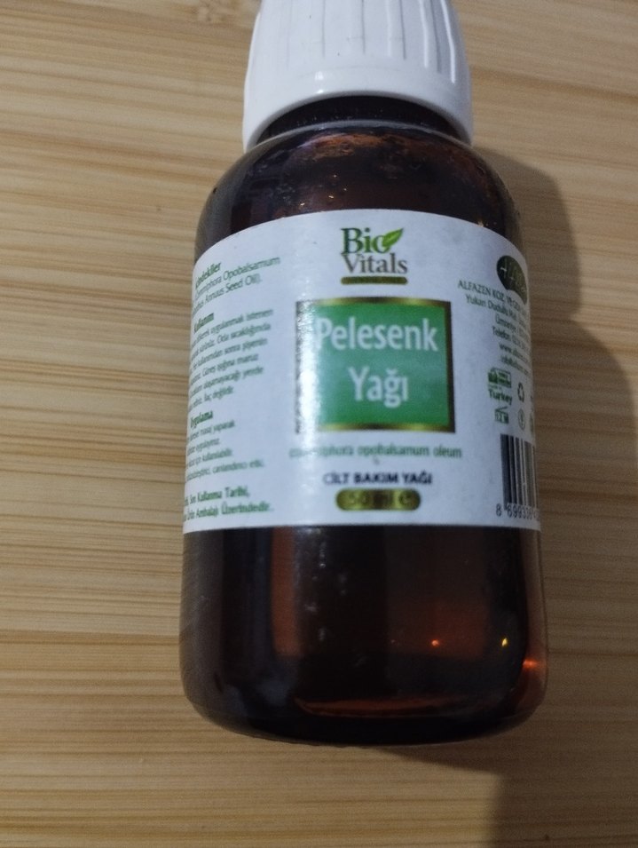 Bio Vitals Pelesenk Yağı, cilt sağlığını destekleyen ve yaşlanma karşıtı özelliklere sahip cilt bakım yağıdır. Koyu cam şişede sunulmaktadır. hiç kullanılmamıştır kapağı açılmamıştır. 50 ml