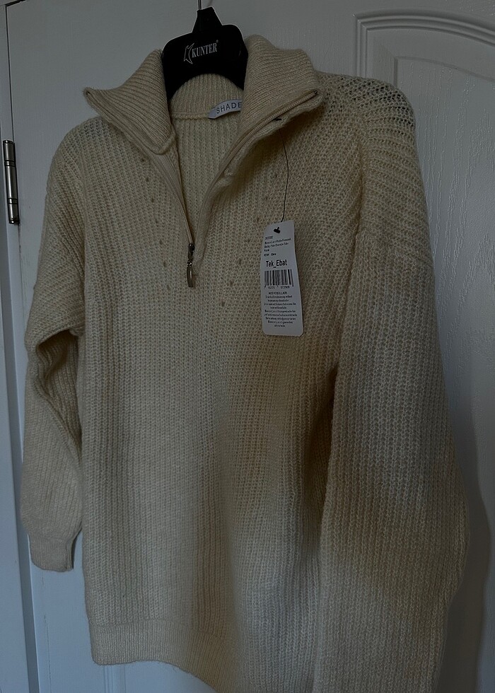Kadın fermuarlı balıkçı yaka oversize triko kazak standart beden