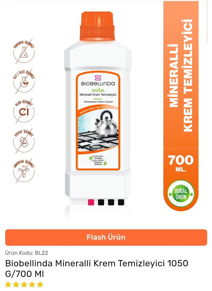 Biobellinda doğal içerikli mineralli krem temizleyici, 700 ml, etkili ve nazik temizlik sağlar. konsantre olup 1 yıl kadar kullanım sağlar. Doğal içerikli olduğu için elleri tahriş etmez. Türk malı.