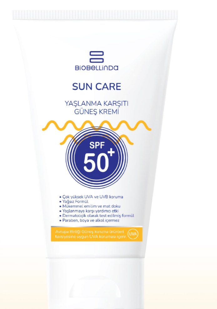BiOBELLINDA yaşlanma karşıtı güneş kremi SPF 50+ ile çok yüksek UVA ve UVB koruması sağlar. Hafif, çabuk emilen ve mat bir dokuya sahiptir. Paraben, boya ve alkol içermez, dermatolojik olarak test edilmiştir. ☀️