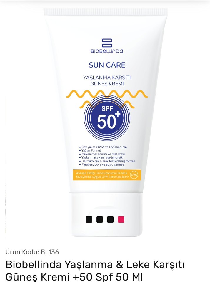 Biobellinda yaşlanma ve leke karşıtı güneş kremi SPF 50 ile yüksek UVA ve UVB koruması sağlar. Hafif formülü hızlı emilir, paraben ve renklendirici içermez. Hassas ciltlere uygundur. ☀️