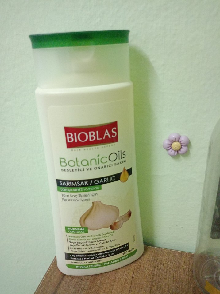 Bioblas BotanicOils sarımsak özlü şampuan, saçları besleyip onarır. Tüm saç tipleri için uygundur, kokusuz ve paraben içermez.