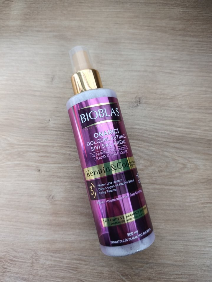 Bioblas Keratin & Collagen onarıcı sıvı saç kremi, keratin ve kollajen ile saçları güçlendirir, kolay taranmasını sağlar. Vitamin E içerir. ♀️