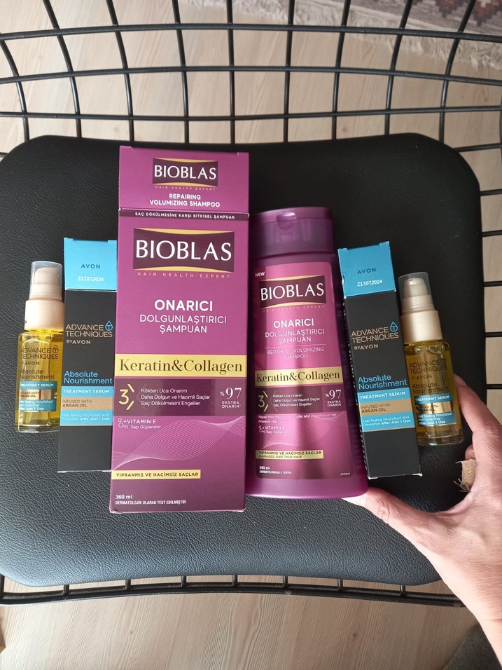 Bioblas onarıcı şampuan keratin ve kolajen içerir, saçı onarır ve hacim kazandırır, yeni, 2 adet de Avon Argan yağı saç bakım yeni birlikte üçlü fiyat. Saçları güçlendirir ve dolgunlaştırır. Farklı çeşitleri için sayfama bakabilirsiniz.