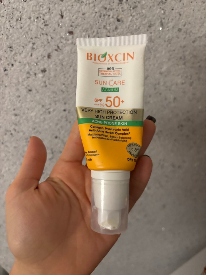 Biocxin SPF 50+ güneş kremi, akneye meyilli ciltler için kolajen ve hyaluronik asit içerir. Matlaştırıcı etkisi ile cildi dengeler ve nemlendirir. ☀️ eczaneden alindi