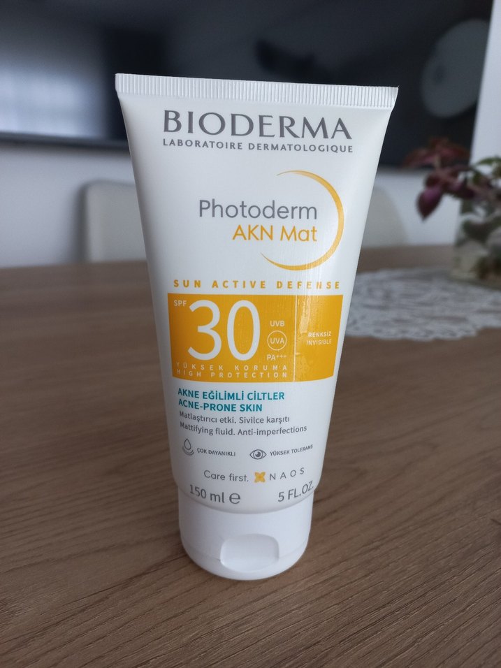 Bioderma Photoderm AKN Mat SPF 30, akneye eğilimli ciltler için güneş koruması sağlar. Parlamayı kontrol eder ve kusurları azaltır. Hassas ciltlere uygundur. yeni açıldı bir kaç defa kullanildı skt.04.2028